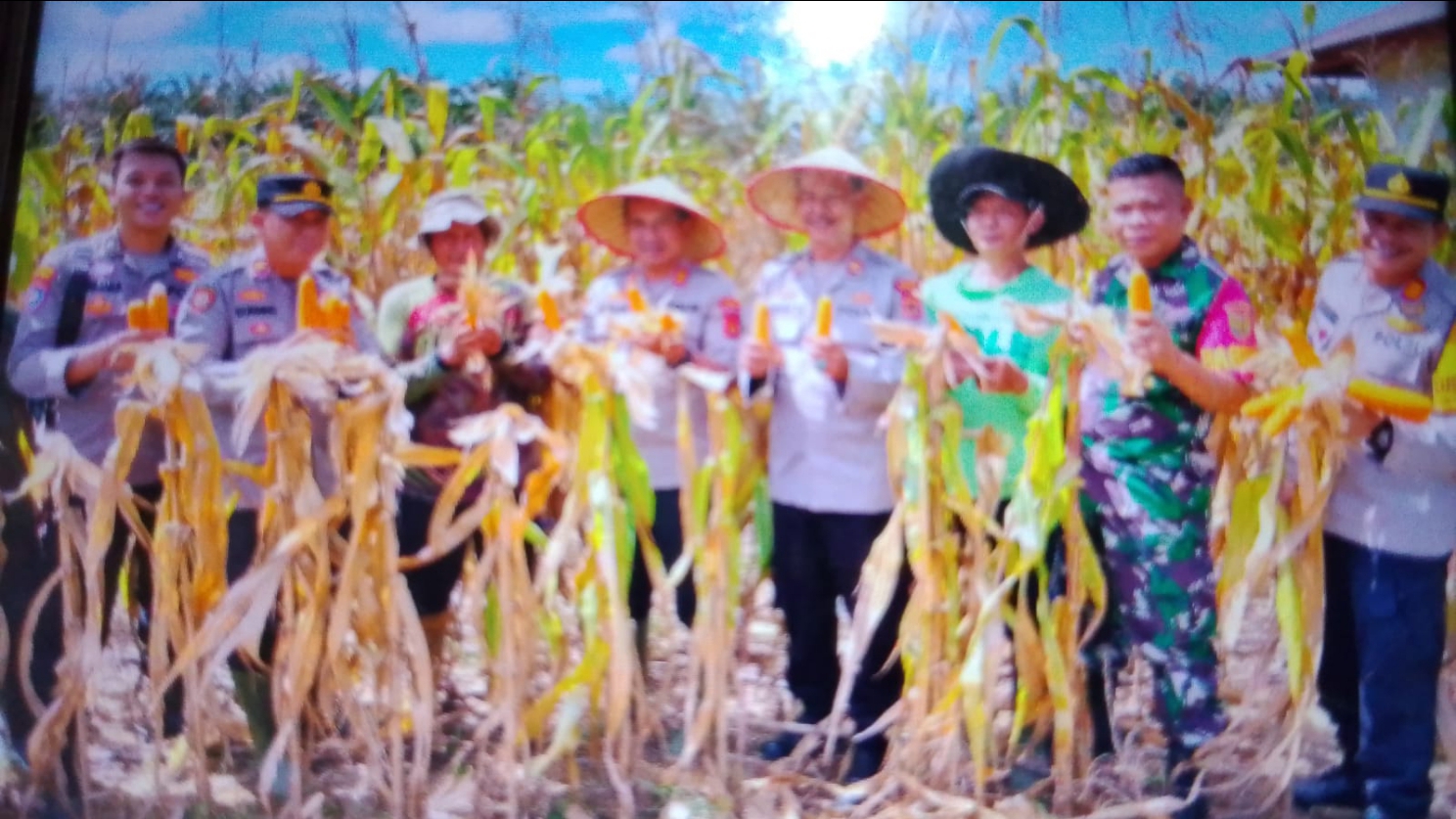 Kapolres Bungo AKBP Natalena Eko Cahyono mimpin kegiatan panen Raya jagung serentak di Dusun Gapura suci kecamatan Pelepat Kab Bungo pro Jambi. Senin 12 Mei 2025.