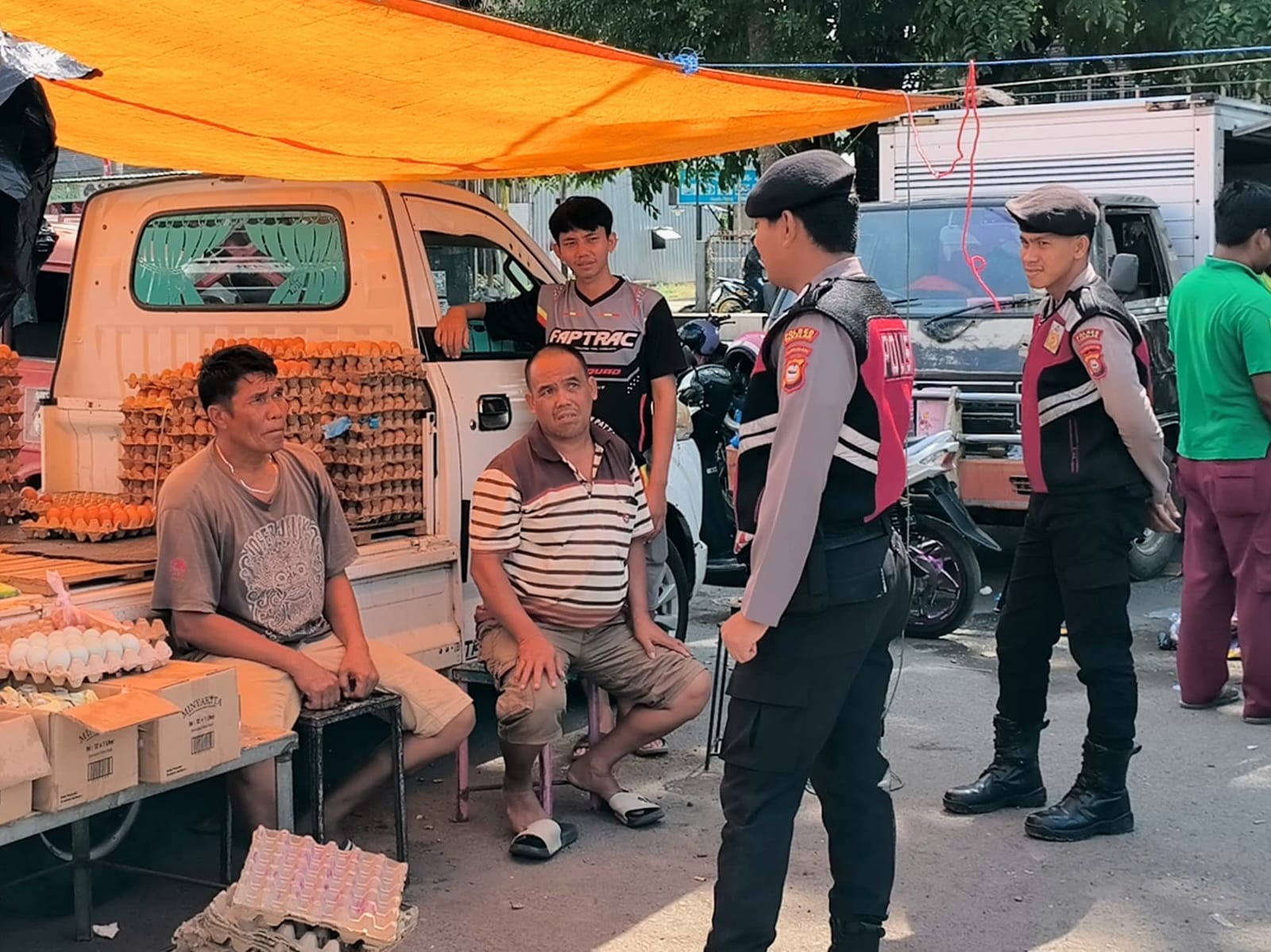 Dalam kegiatan itu, para personel menyapa pedagang dan pengunjung pasar sambil memberikan imbauan kamtibmas agar tetap waspada terhadap potensi kejahatan seperti pencurian, penipuan, hingga peredaran uang palsu.